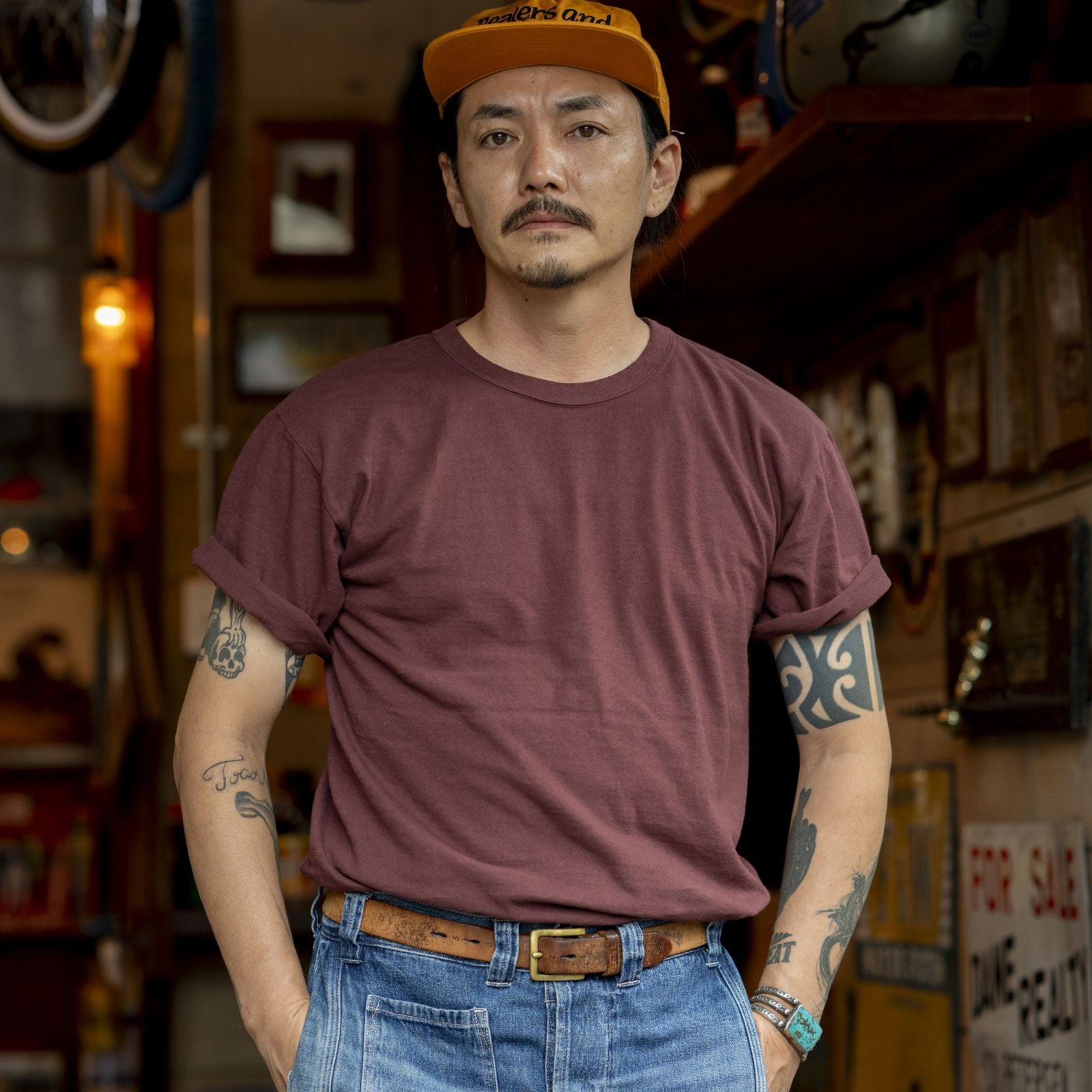 lot.35001 FALLEN COTTON MID WEIGHT S/S TEE (BORDEAUX)