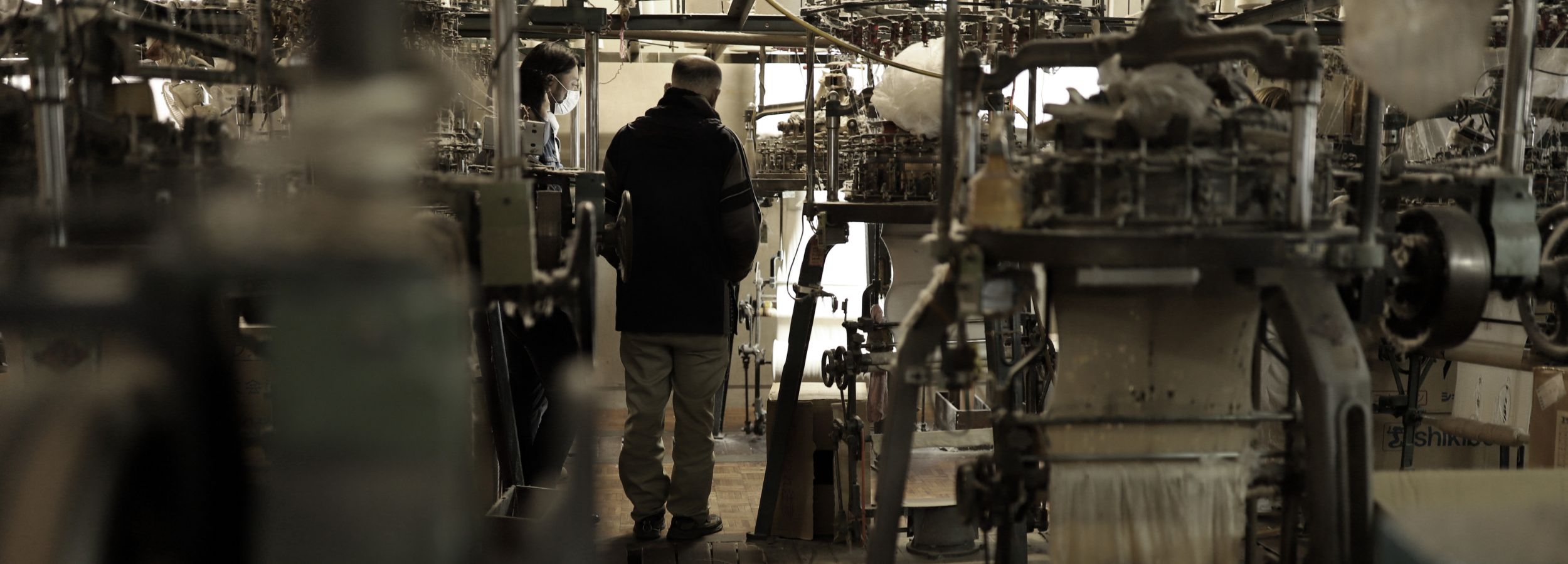 The loop knitting machine that knits sweatshirts is an extremely rare knitting machine that is only operated in Wakayama, even in the world. This knitting machine has survived through careful maintenance by a few skilled craftsmen in Japan, and there are not many craftsmen who can handle it. Unlike modern high-speed knitting machines, it takes a lot of time to produce, but it produces a body with a nice texture, softness, and comfort.