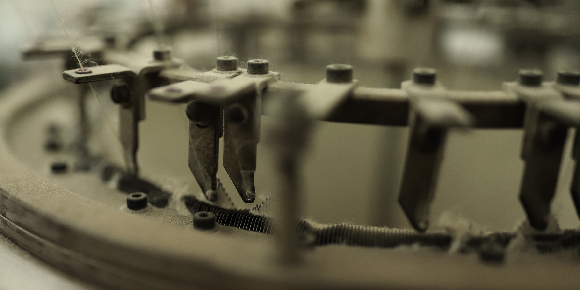 生産効率はよくないが、理想的なスウェット生地を編むことができる。