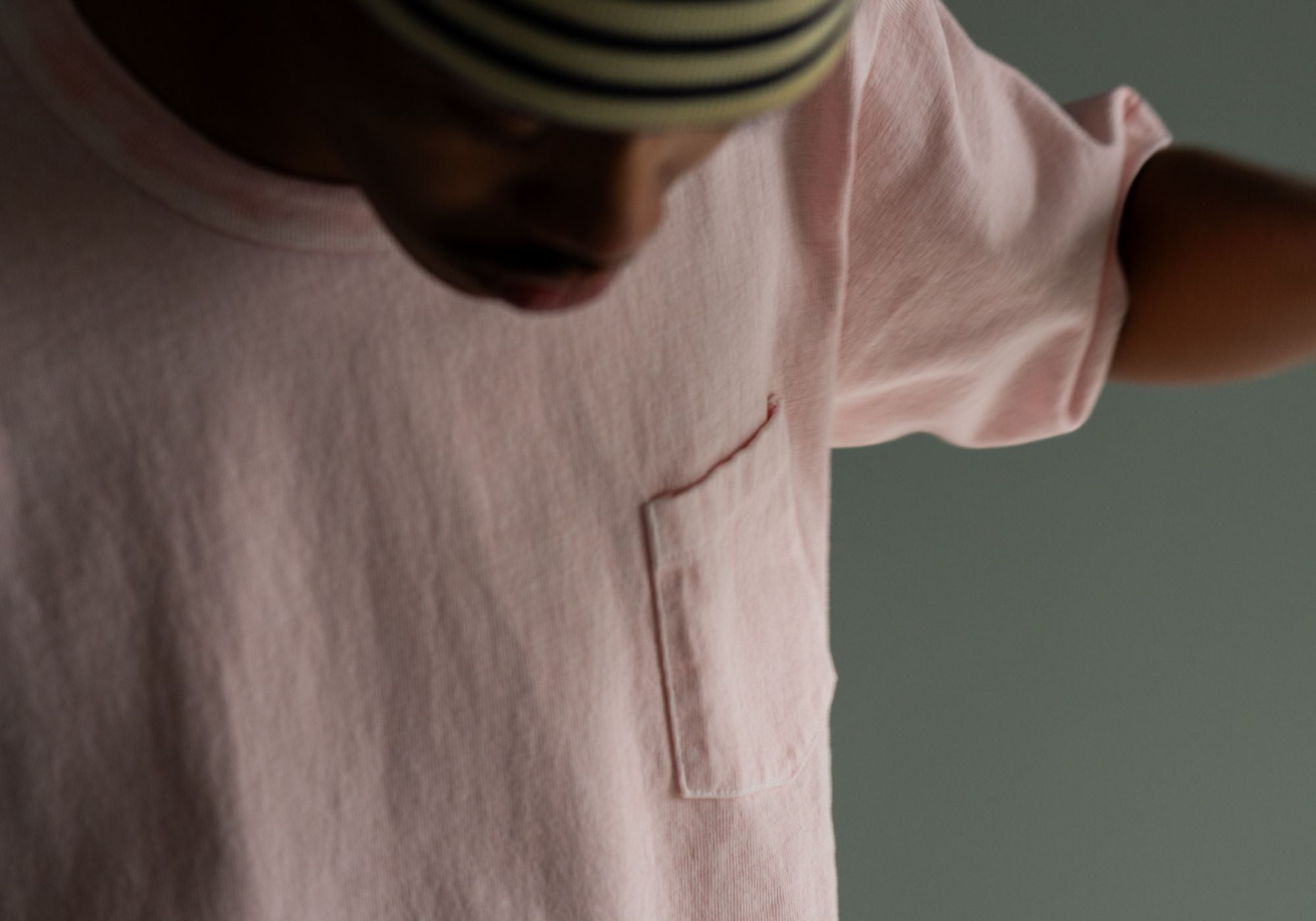 8番という太番手の空紡糸を、度詰めにして編み立てているヘビーウェイトTシャツ。一般的な中太の糸を度詰めにしたボディと違い、太い糸を度詰めにすると、編み目にわずかな余裕が生まれ、程よいストレッチ性が生じます。つまり太番手による硬派な表情がありながら、肌触りが柔らかく、軽やかな着心地を楽しめるというメリットがあります。ドライな風合いのヘビーウェイトボディのため、Tシャツ一枚でも、夏のコーディネートが大人びて見える点も特徴です。